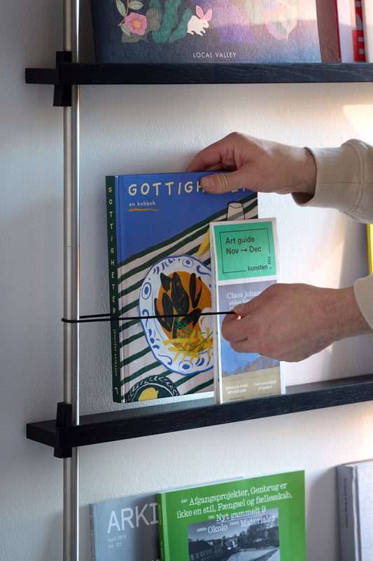 Magazine Shelf is a smart way to present magazines, books, or the other things you want to show to the world. The edge of the shelves rises slightly, preventing the magazines from sliding off, while a rubber band - an element MOEBE uses in many designs – keeps everything in place. Available in pre-defined sets or custom configurations, Magazine Shelf can also be integrated into the existing MOEBE Shelving System to unlock even more possibilities.