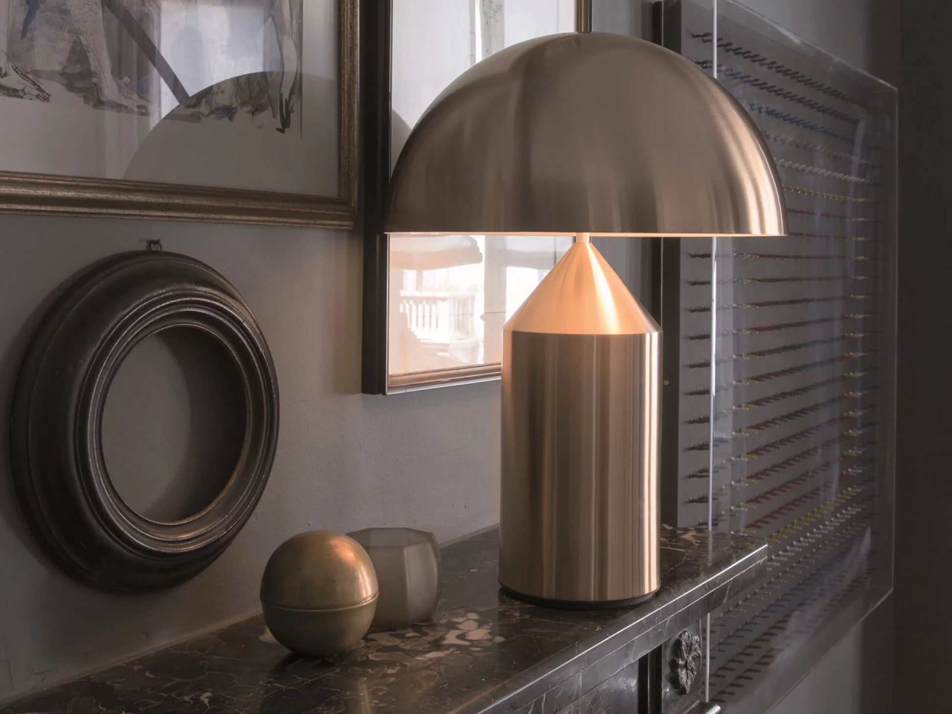 Atollo’s secret probably lies in the geometrical construction of its shapes: the cone on the cylinder and the semisphere above all. A luminous sculpture from which nothing can be removed to which nothing can be added. And which nothing can copy.