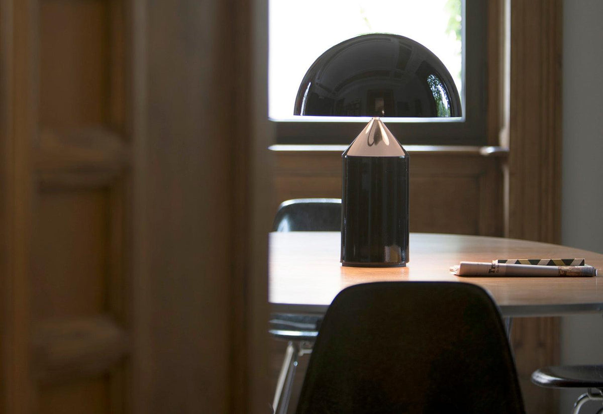 Atollo’s secret probably lies in the geometrical construction of its shapes: the cone on the cylinder and the semisphere above all. A luminous sculpture from which nothing can be removed to which nothing can be added. And which nothing can copy.