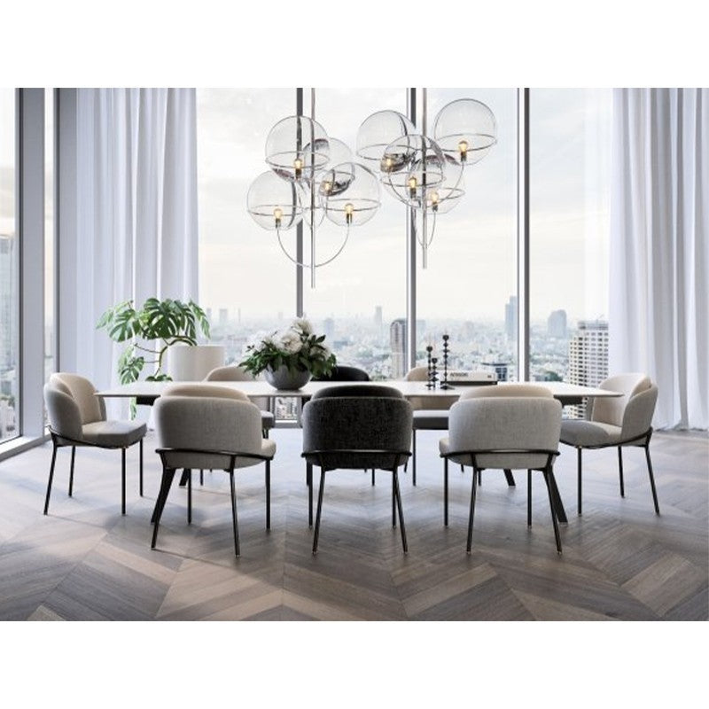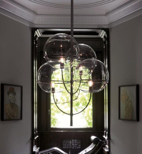 Four globes per light. With a stem length of 135cm, the Lyndon pendant includes an extra stem which can be used to increase the drop to 206cm.