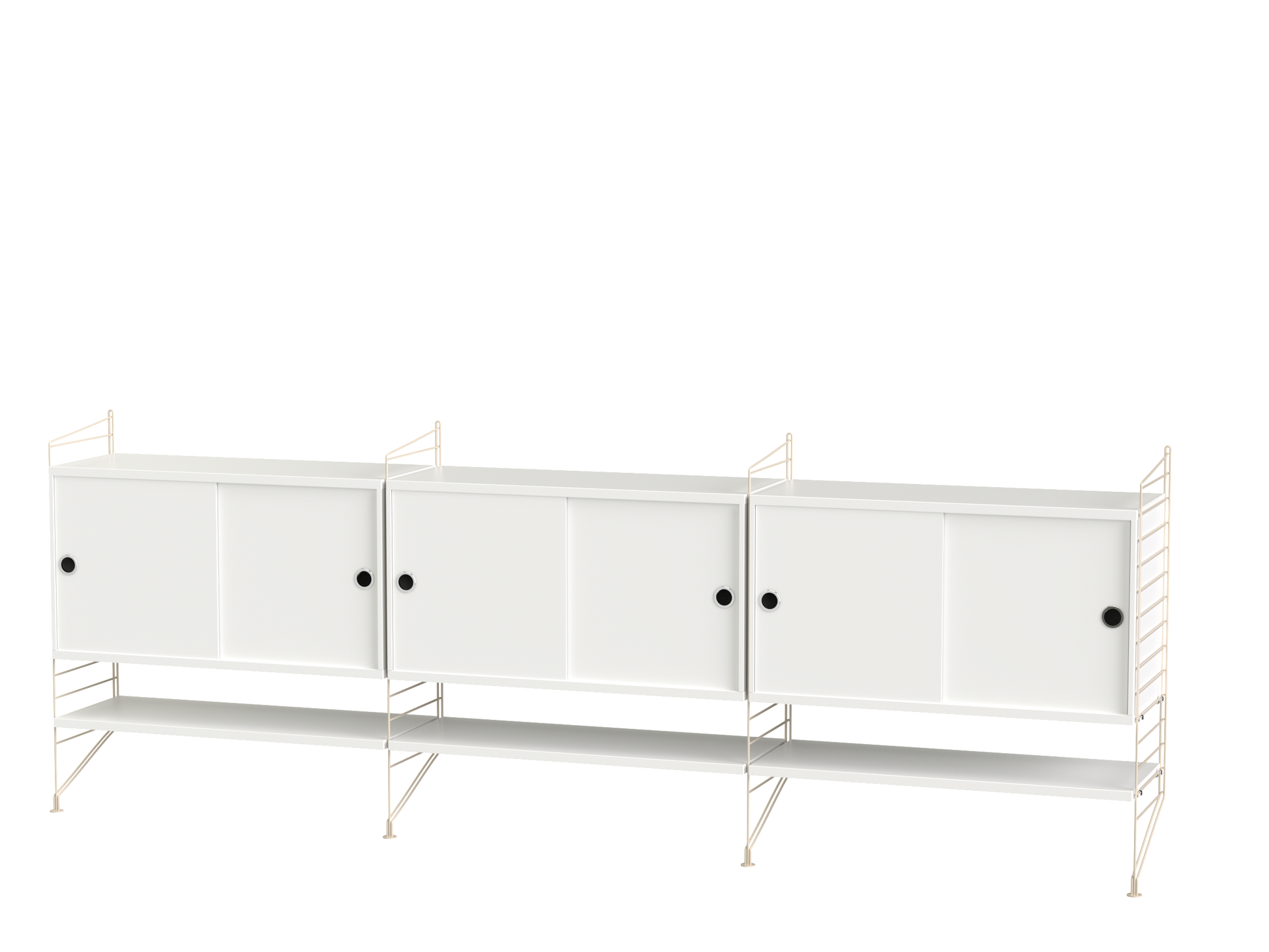 Elegant and clean floor mounted sideboard solution with plenty of storage possibilities with added shelves underneath perfect for your favourite paperback books. Panels in brown.