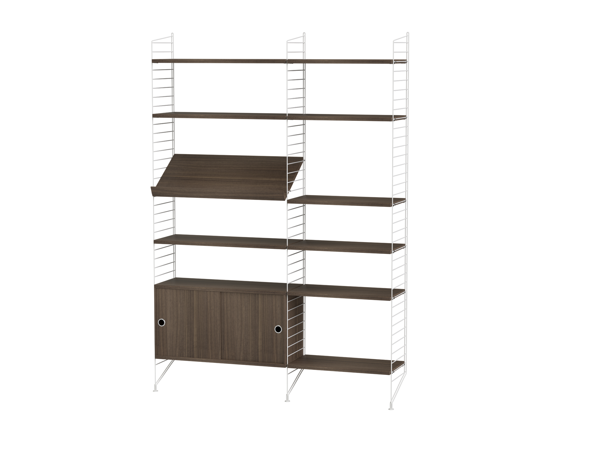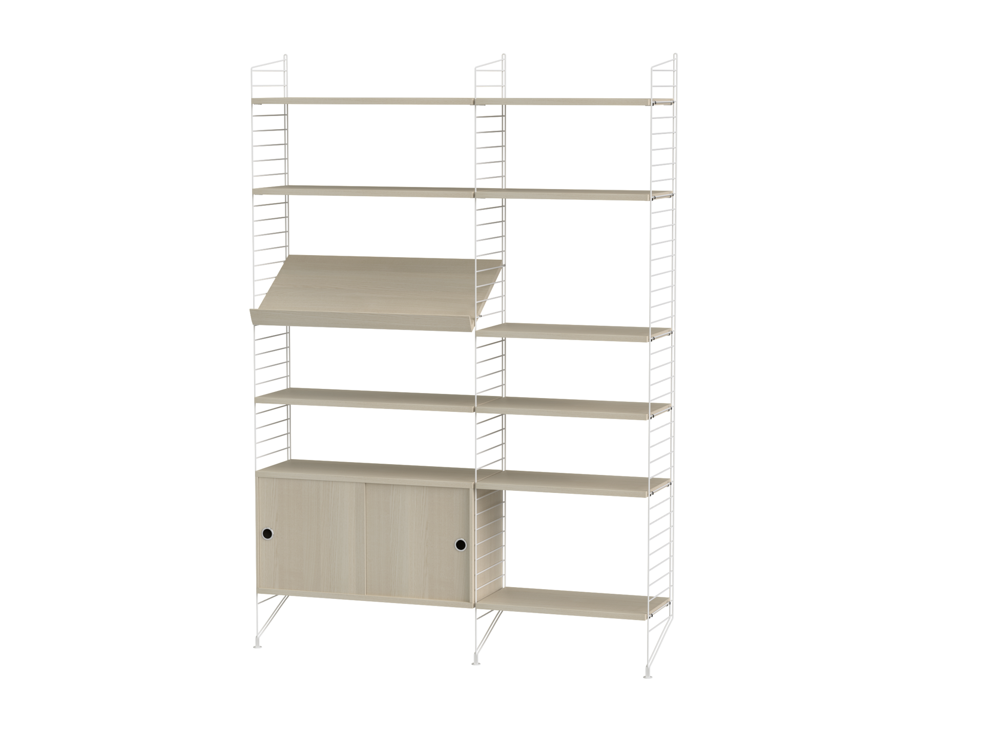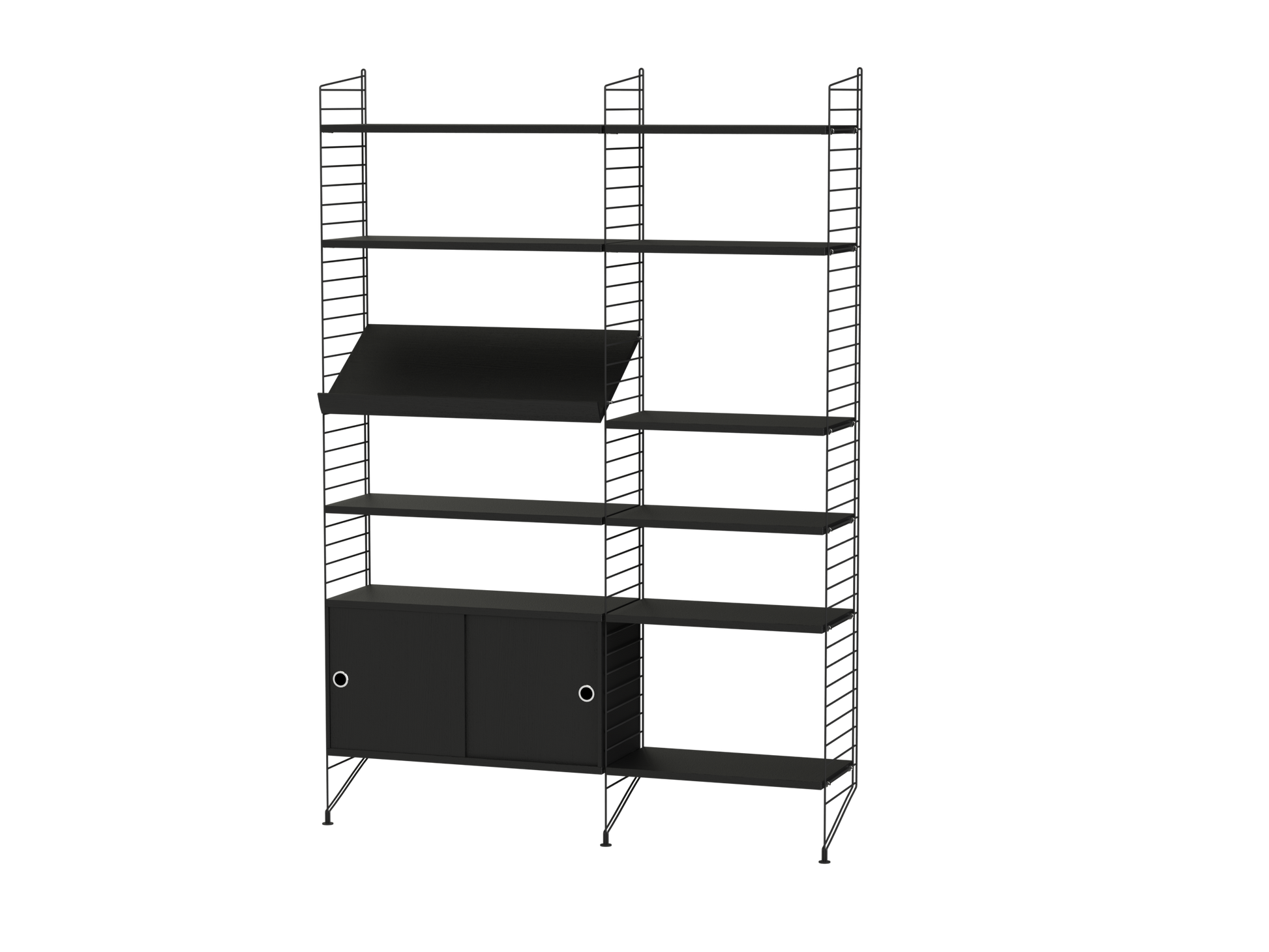 This medium sized combination got it all. Store you most beloved objects and books on the shelves, magazines on the tilted shelf and hide the other stuff in the cabinet. You will not miss anything with this combination.
