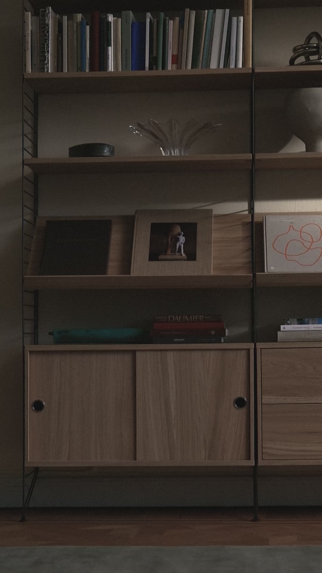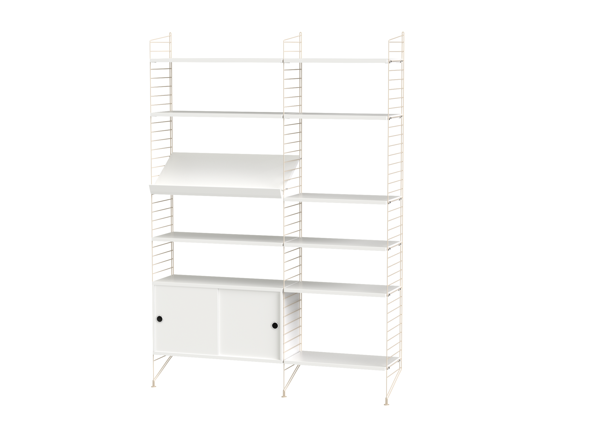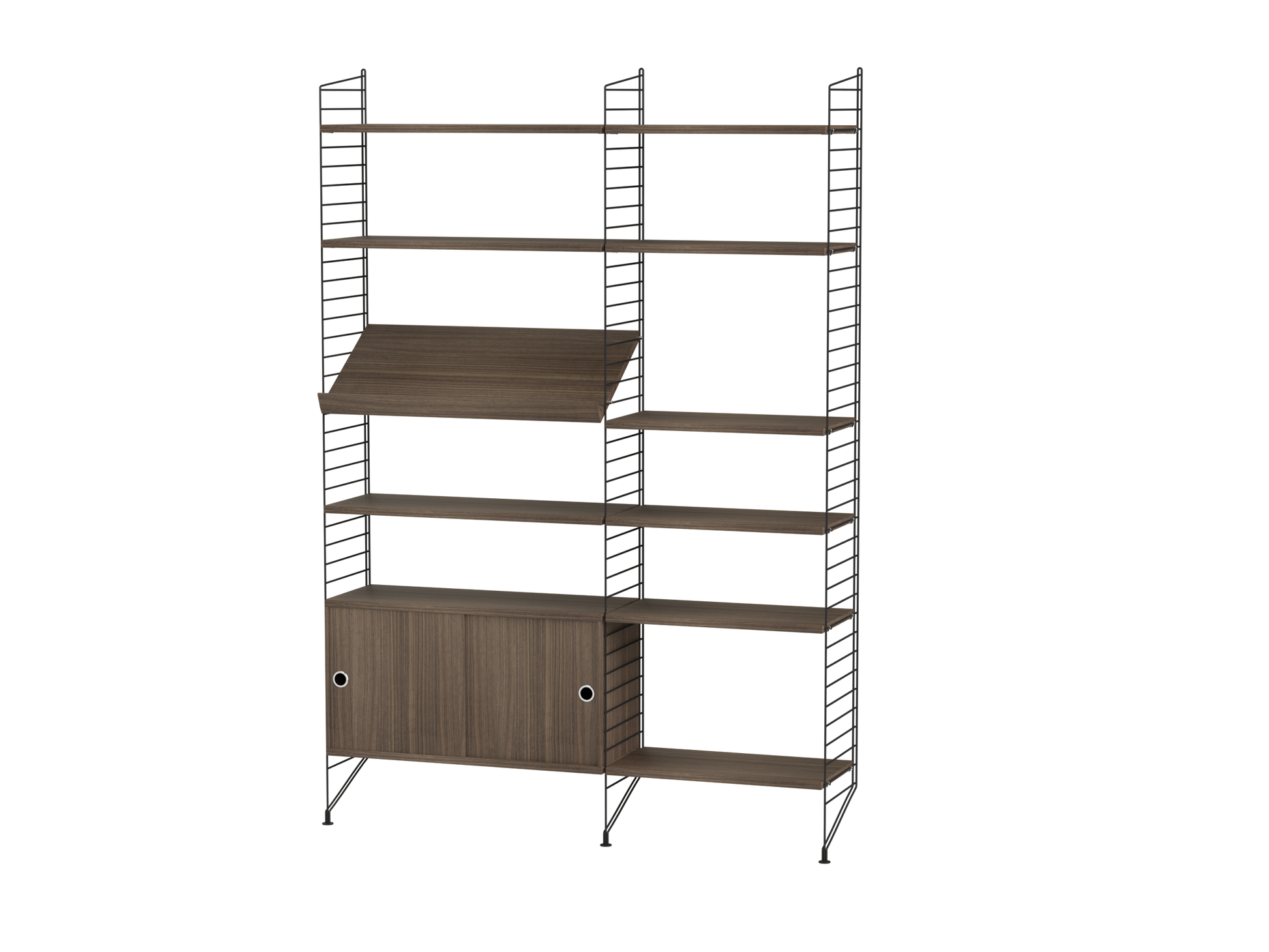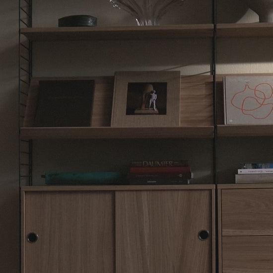 This medium sized combination got it all. Store you most beloved objects and books on the shelves, magazines on the tilted shelf and hide the other stuff in the cabinet. You will not miss anything with this combination.