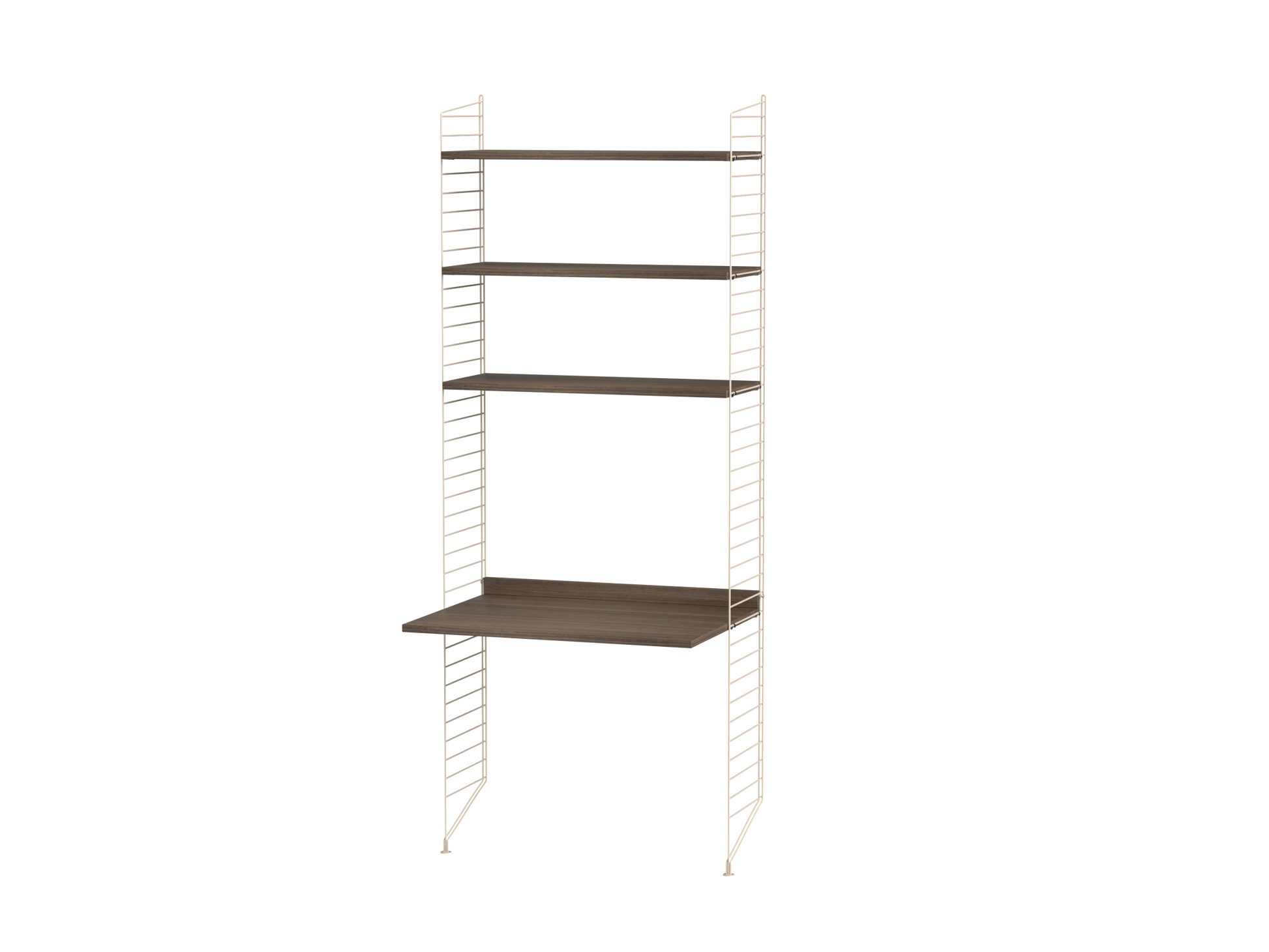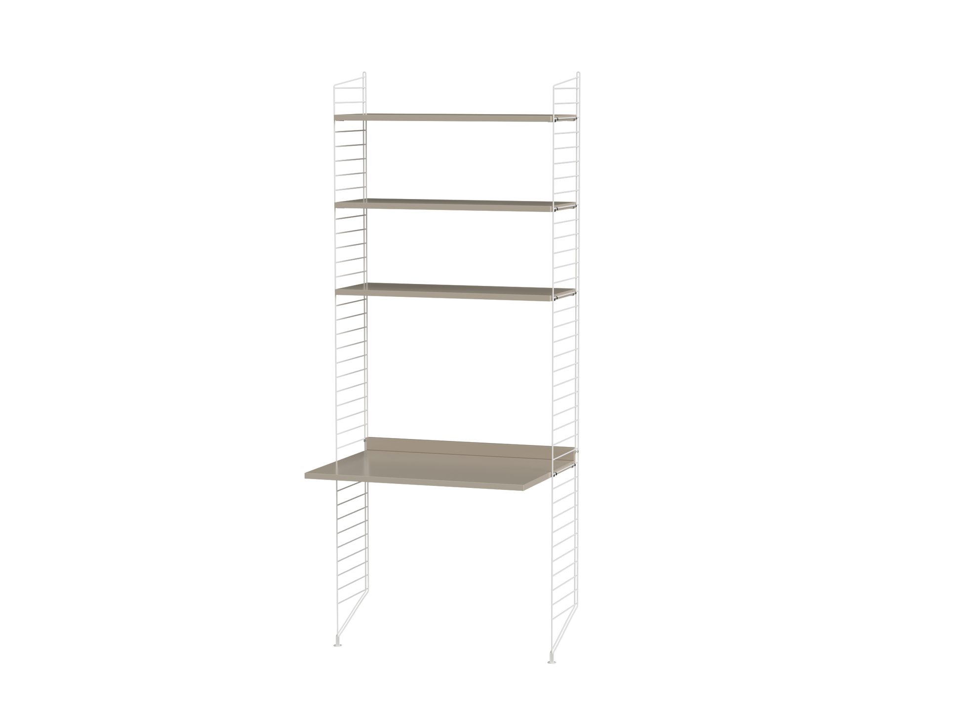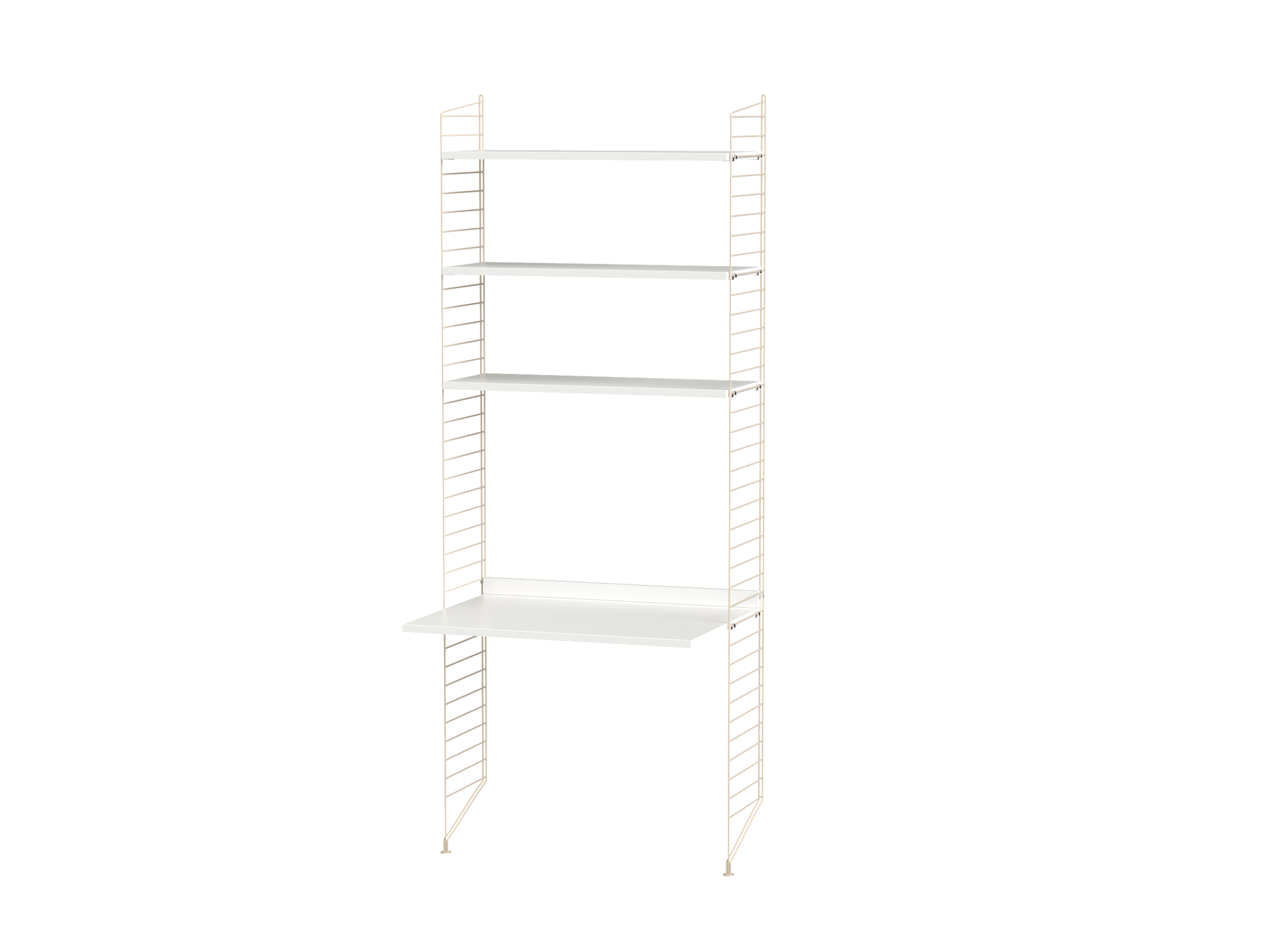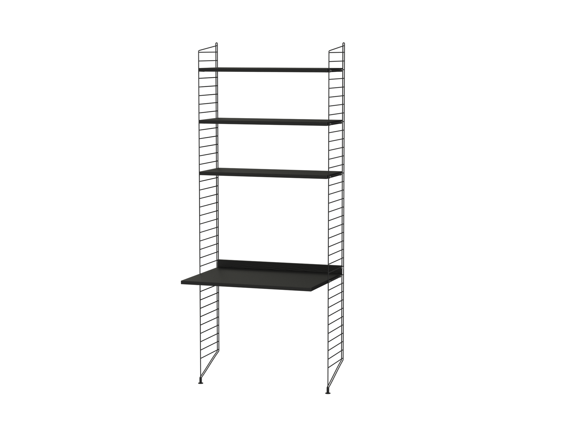 Floor mounted combination perfect for the kids room. A merge between a bookshelf and creative spot for the kids with a work desk at the bottom and shelves at the top.
