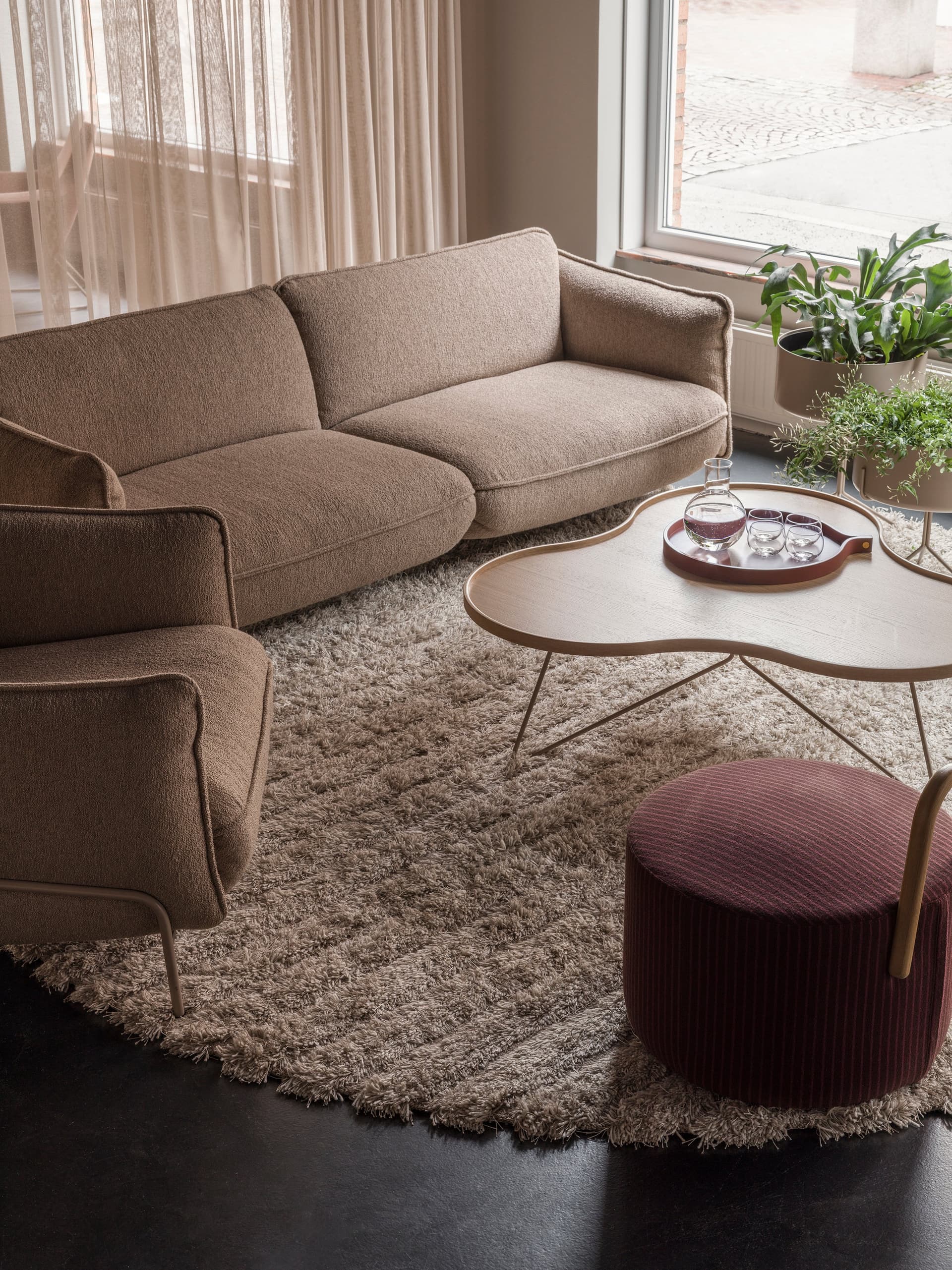 The organic shape and the stem-like legs give Flower mono its characteristic and stylish expression. Flower mono is the table with such a unique design and construction that it has become a signature for Swedese. Flower mono has table tops in three different sizes and all are available in two heights, creating opportunities to play with lines and patterns when you place them together. Flower mono is offered in, as the name suggests, monochrome designs where the disc and base are in the same color. The base is in metal and the top is in veneered wood with a molded veneer edge.