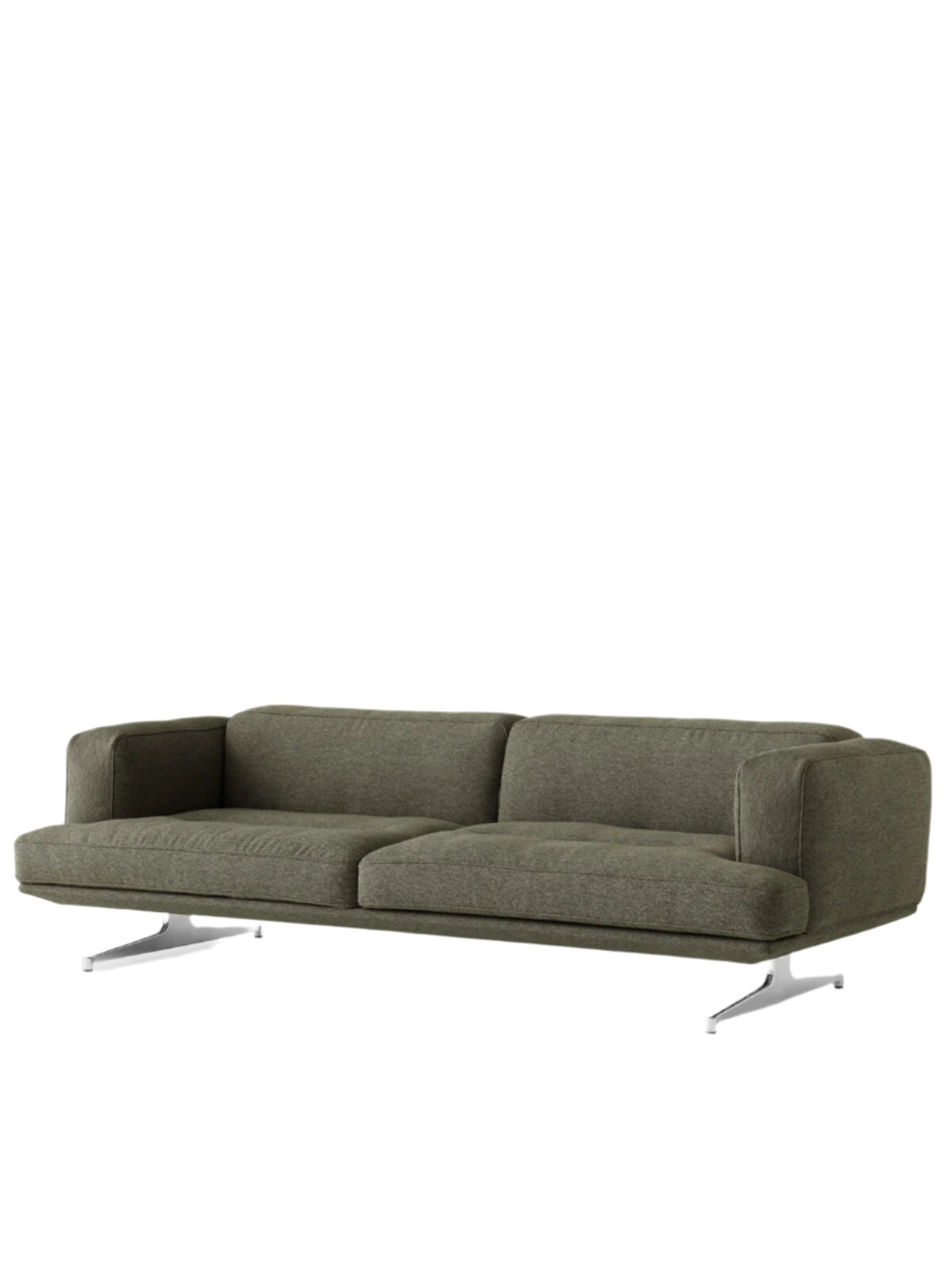 Torbjørn Anderssen and Espen Voll wanted to design a sofa that would provide the utmost comfort within a clearly defined architectural framework. With this vision in mind, they designed Inland, a low-form, deep sofa with high arms and a warm black steel-footed base that gives it the sense of floating.