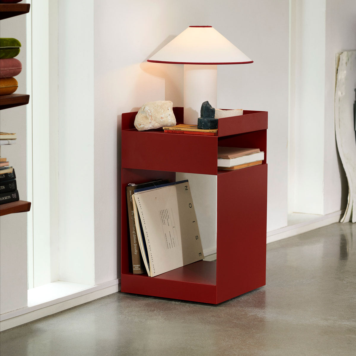 Rotate’s unassuming appearance belies its highly functional design. Created to fulfil a wide variety of purposes – from an office trolley, to a bedside table or bathroom storage unit – this asymmetrical piece can be inserted into any space. To ensure maximum adaptability, it sits on discreet wheels to facilitate quick and simple manoeuvrability from one location to the next.